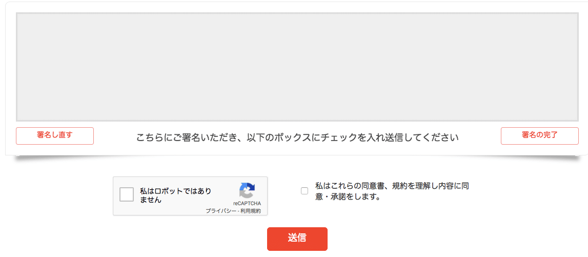 署名の完了をクリックし、チェックを2箇所入れ送信ボタンをクリックします。